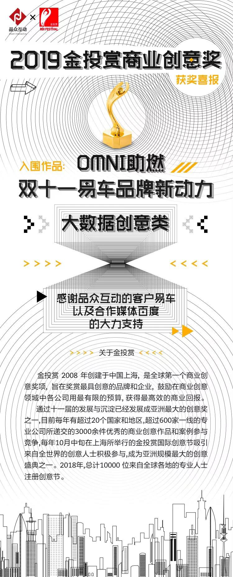 祝賀品眾互動易車案例入圍2019金投賞商業(yè)創(chuàng)意獎