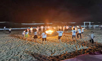 伴著緩緩西下的夕陽,我們到達雙月灣,入住享海亞投國際酒店,直面大海,享自然生態之美。古人常列坐其次,以流觴曲水,一觴一詠,以暢敘幽情。 我們稍稍不一樣:筑火高歌,婆娑起舞。雖無無絲竹管弦之樂,但有清脆歌聲蕩徹在大海邊際;雖無古人盛情才思,但有天龍一家濃郁之愛彌漫海灘。