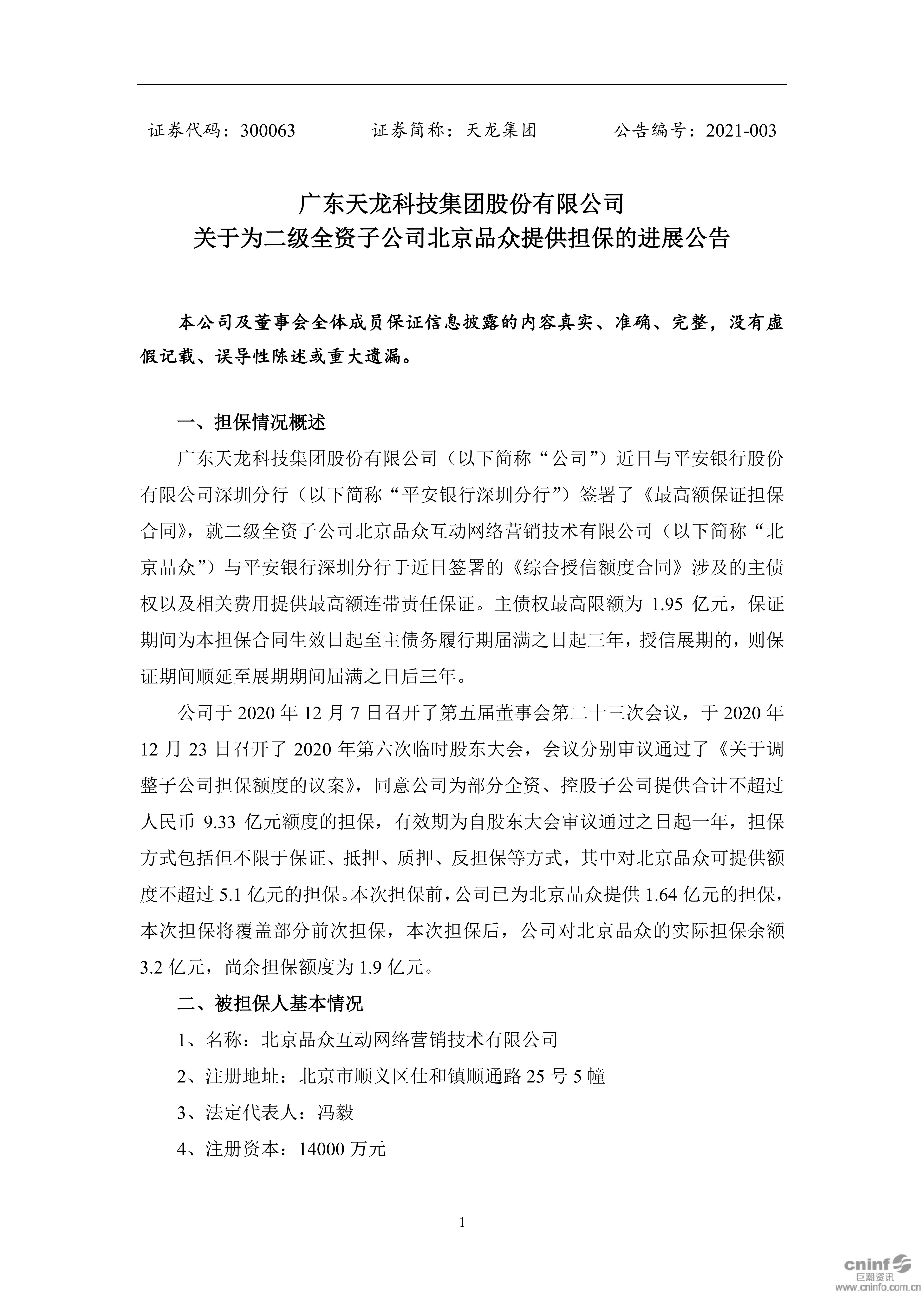 關于為二級全資子公司北京品眾提供擔保的進展公告