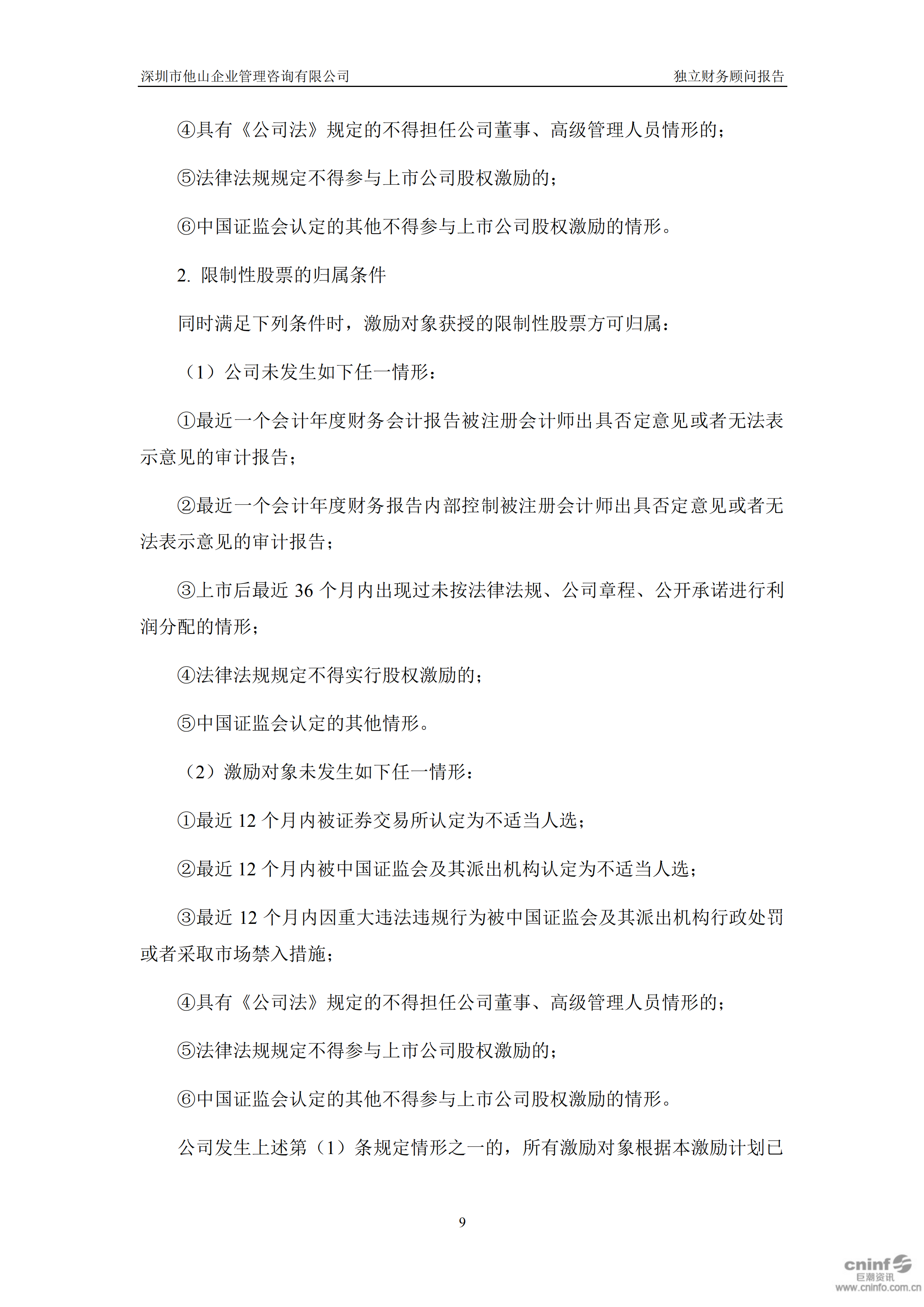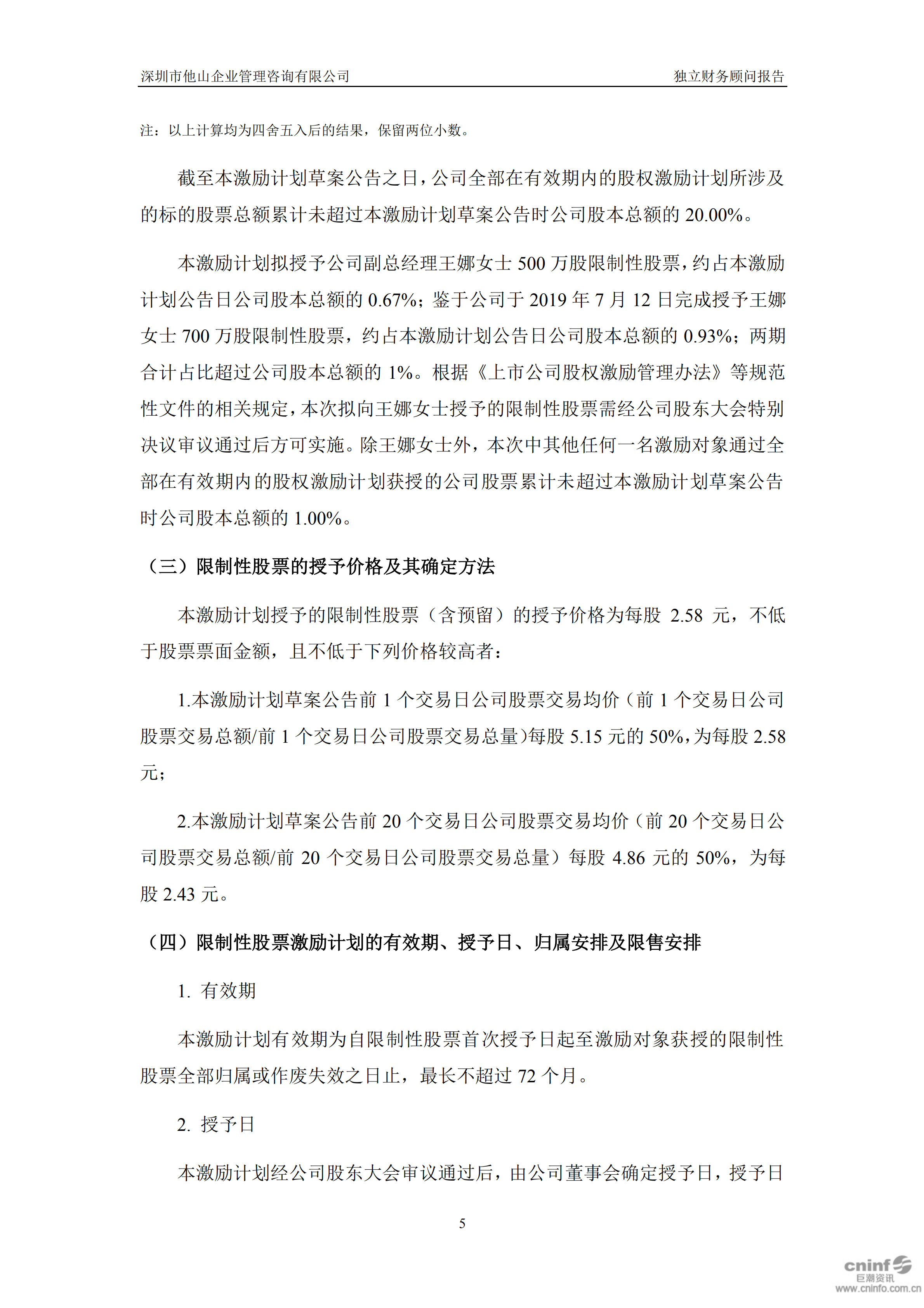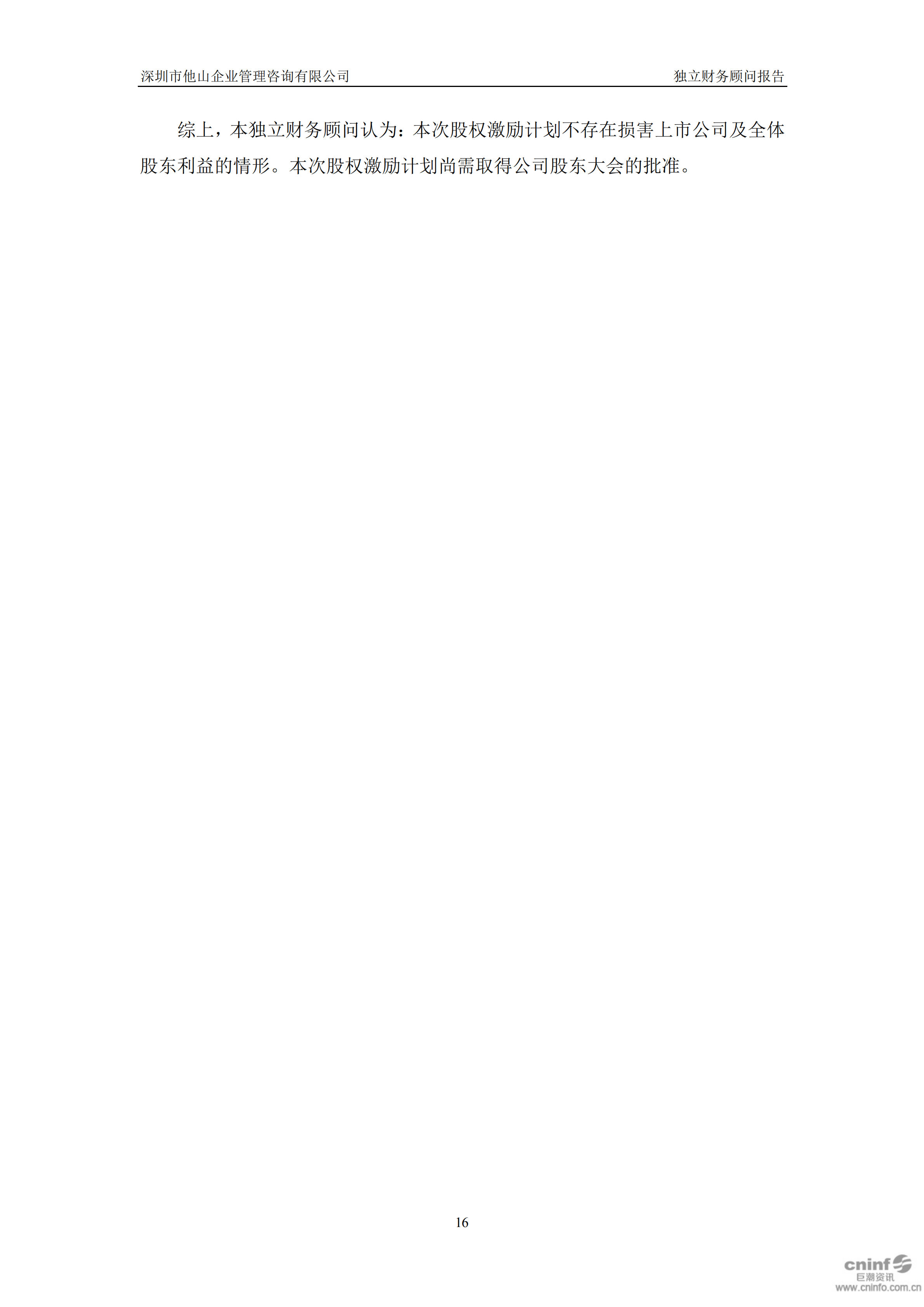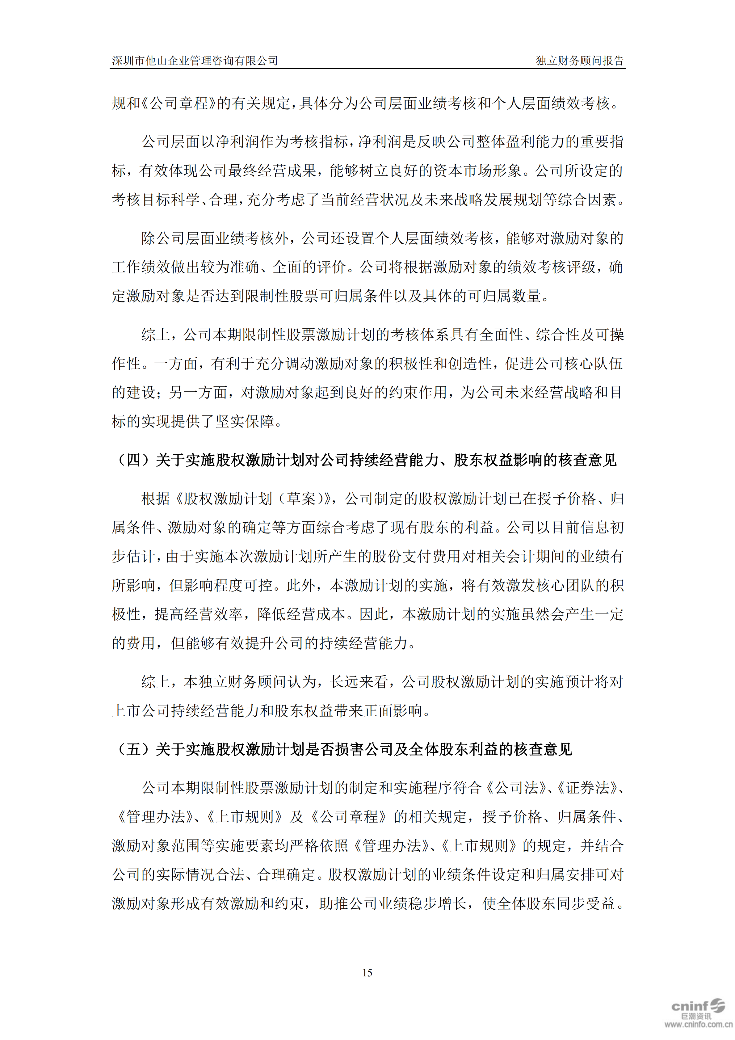 深圳市他山企業管理咨詢有限公司關于公司第二期限制性股票激勵計劃(草案)的獨立財務顧問報告