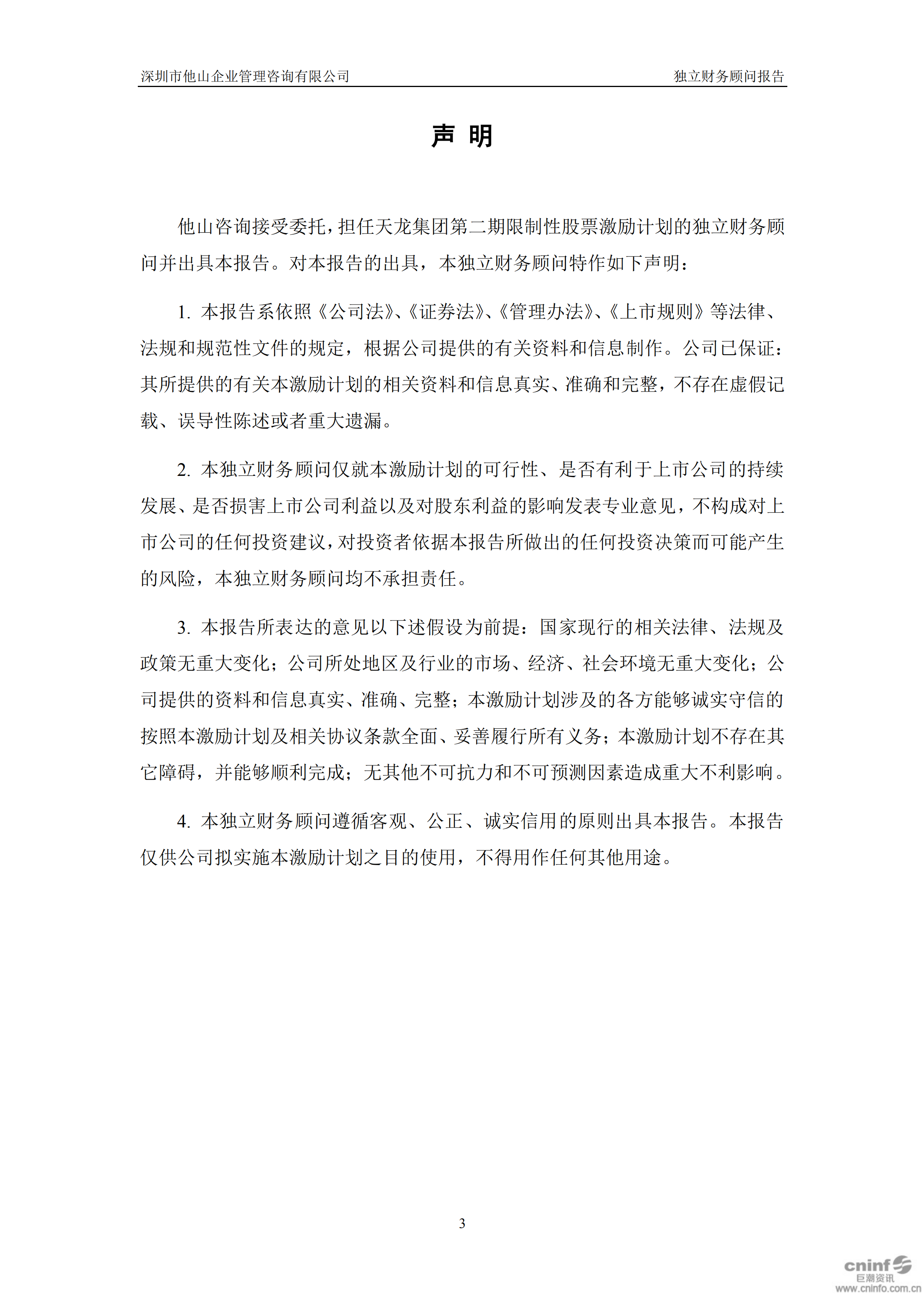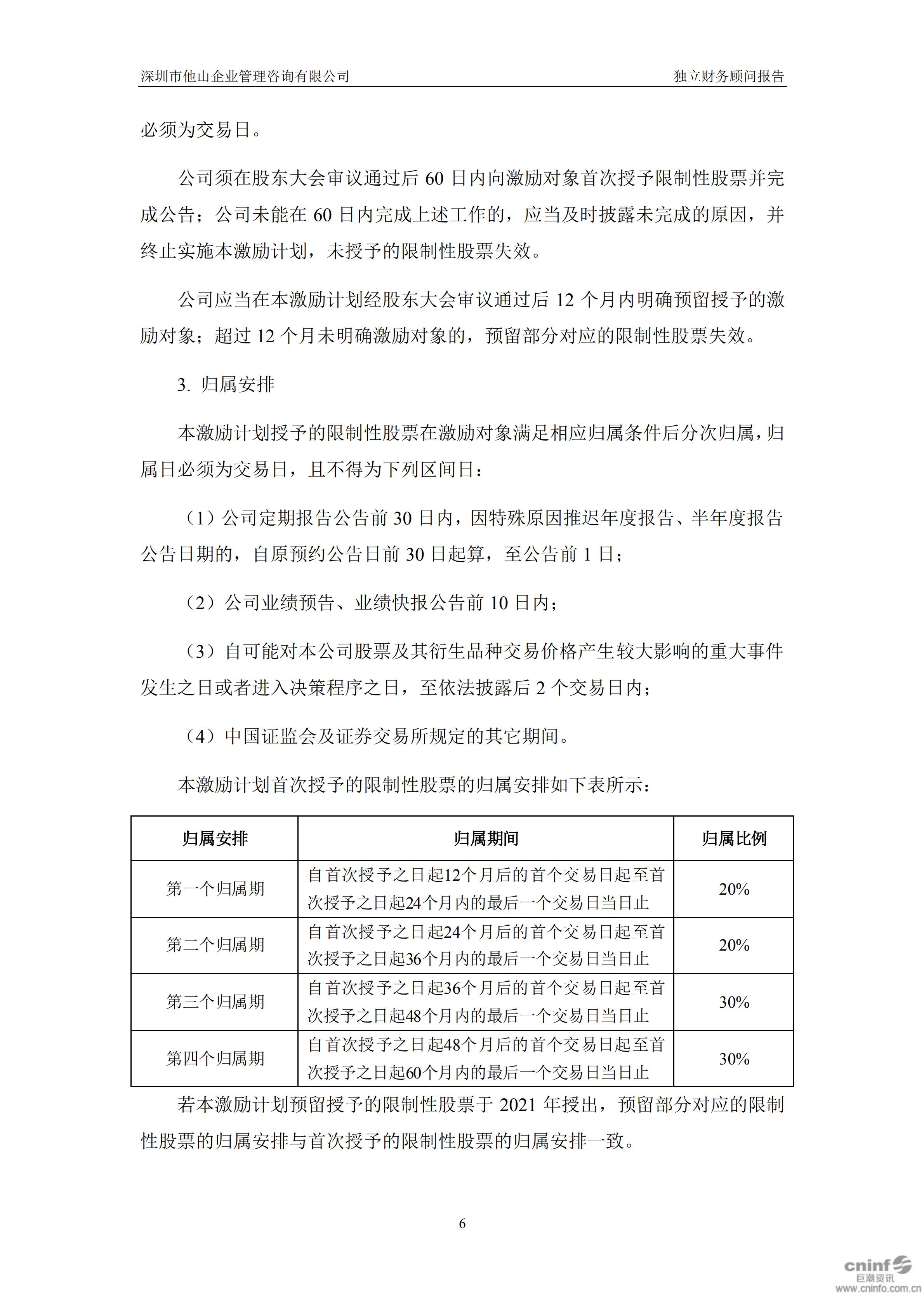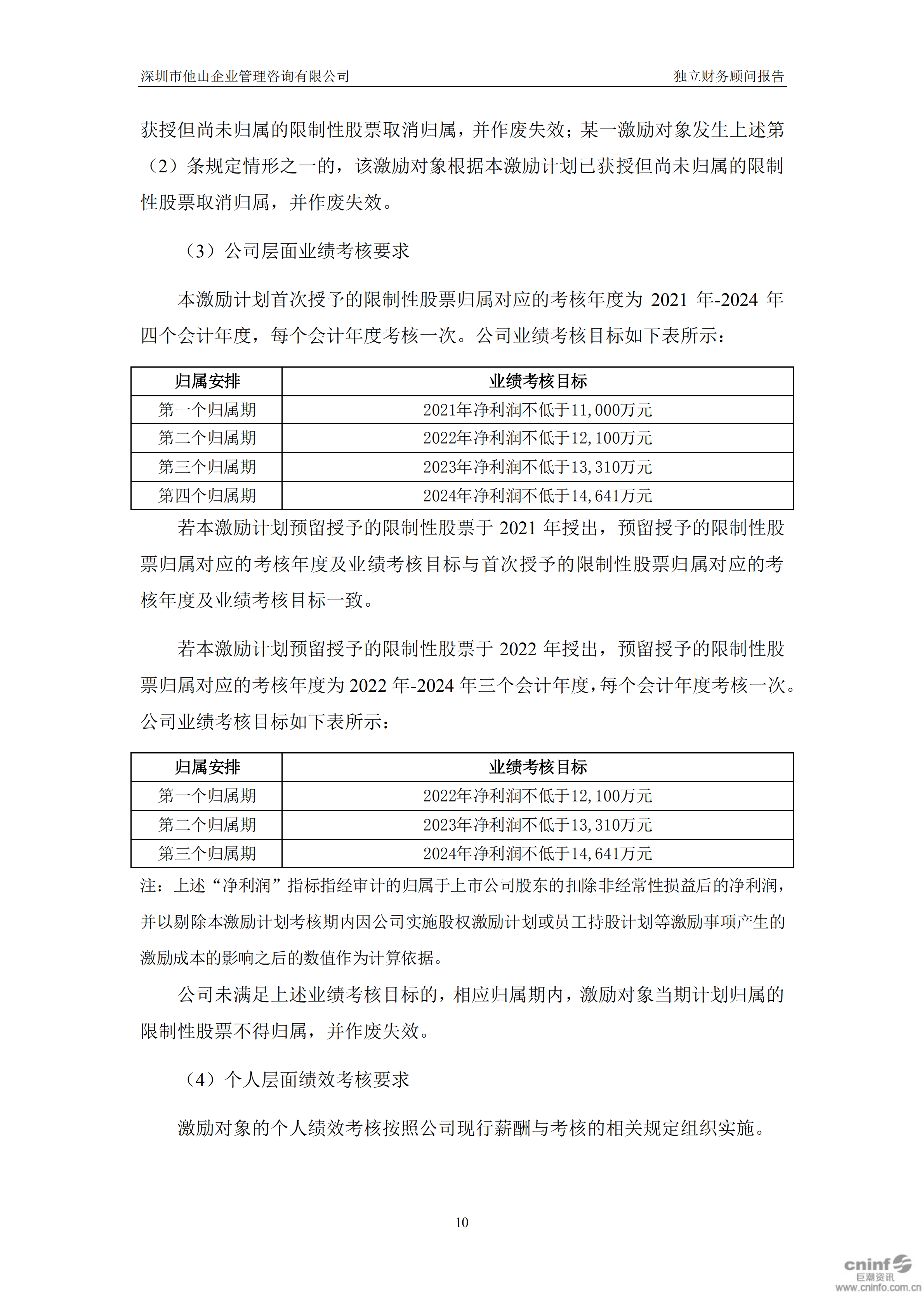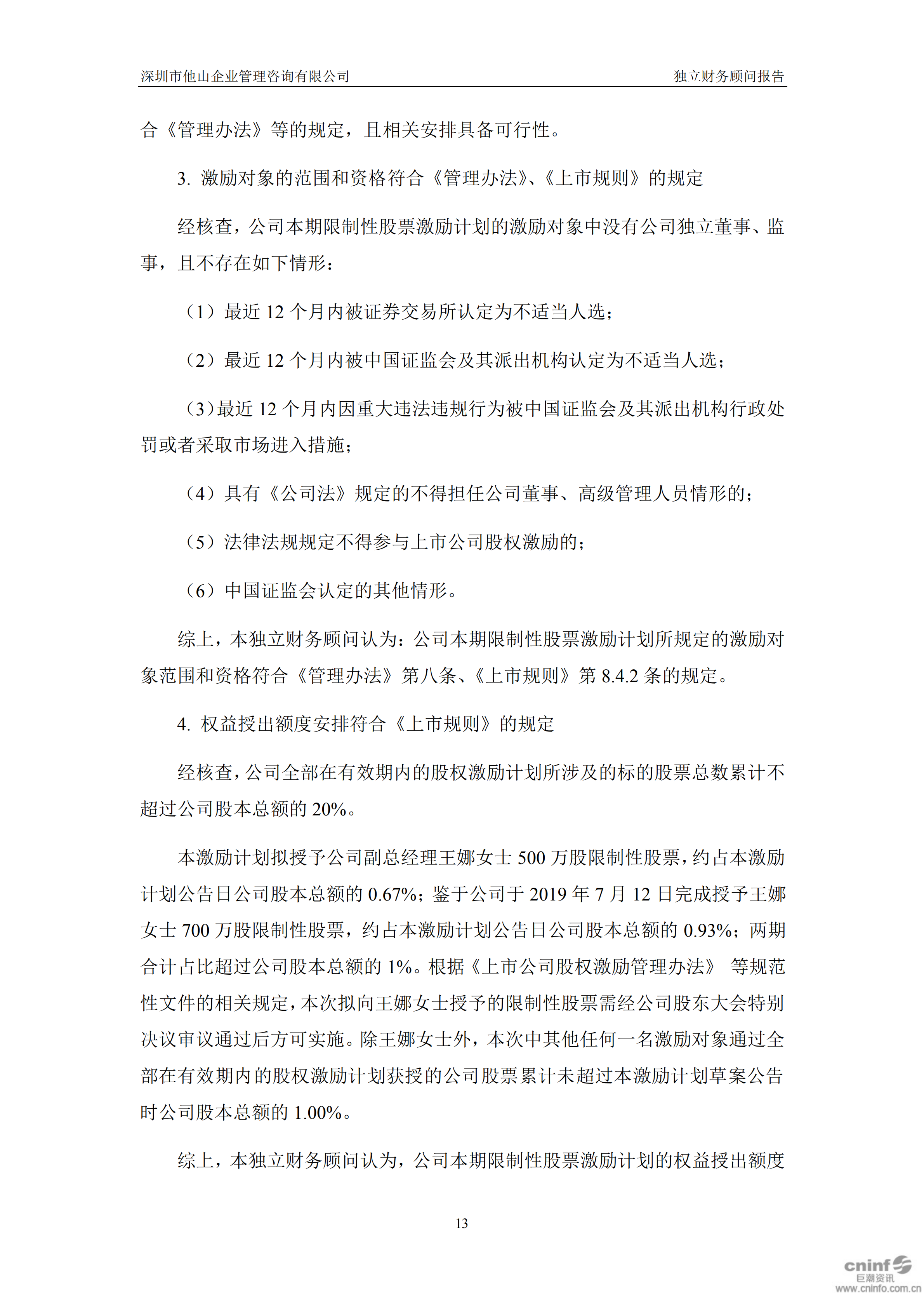 深圳市他山企業管理咨詢有限公司關于公司第二期限制性股票激勵計劃(草案)的獨立財務顧問報告