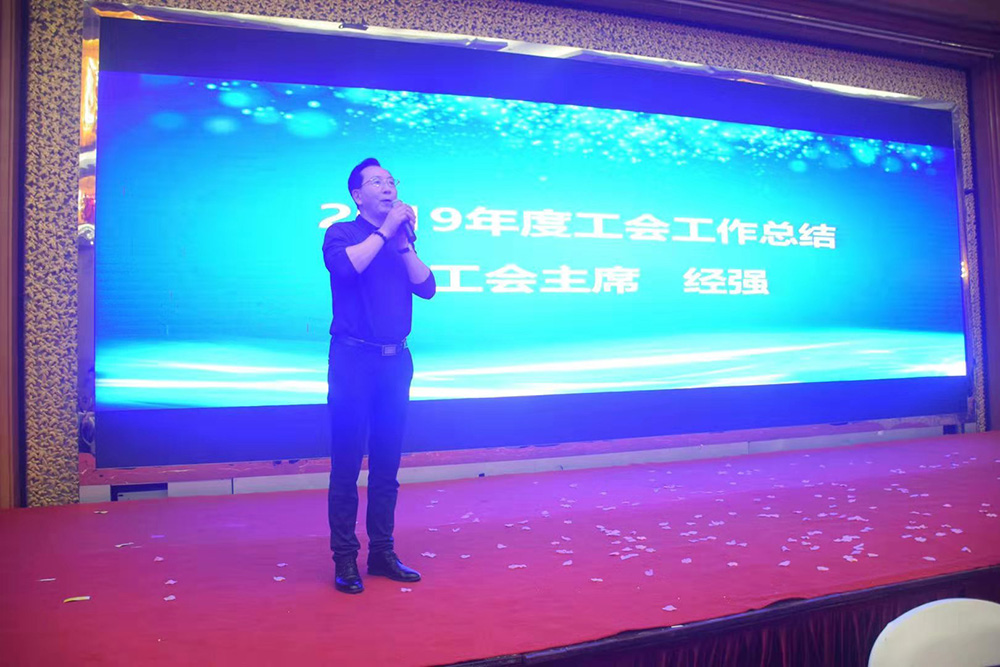 19:48,工會主席經強先生就2019年工會組織建設、困難職工幫扶、文體活動組織、職工福利發放等幾個方面作為工作重點作總結及頒發困難補助金。