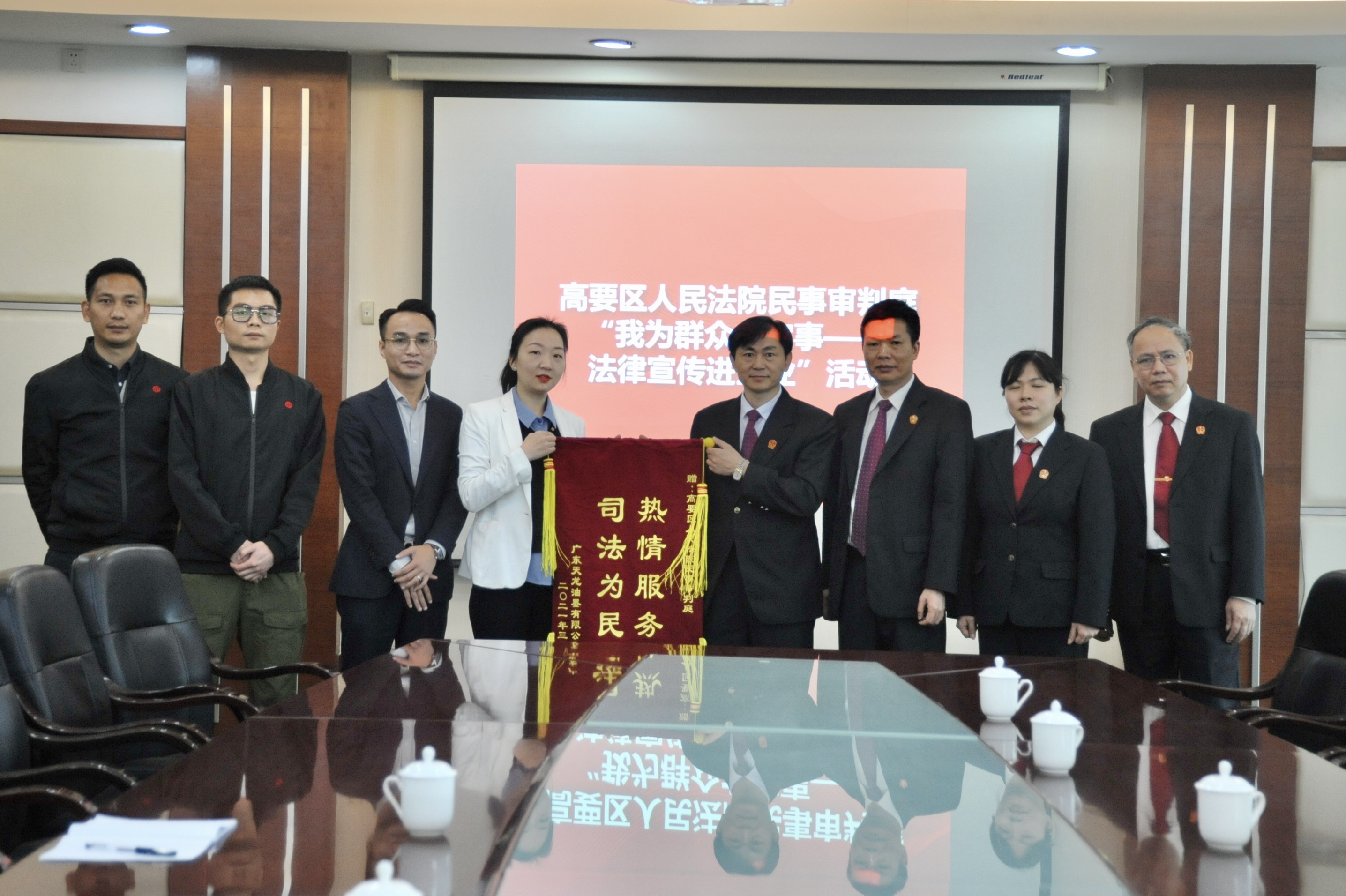 梅琴代表公司向高要區(qū)人民法院民事審判庭送上致謝錦旗,并表示高要區(qū)人民法院民事審判庭始終堅(jiān)持以事實(shí)為依據(jù)、以法律為準(zhǔn)繩,執(zhí)行迅速、高效服務(wù),持續(xù)優(yōu)化營(yíng)商環(huán)境,為我司提供高效、快捷的司法服務(wù)的同時(shí),為我司經(jīng)濟(jì)健康發(fā)展提供有力的司法保障。