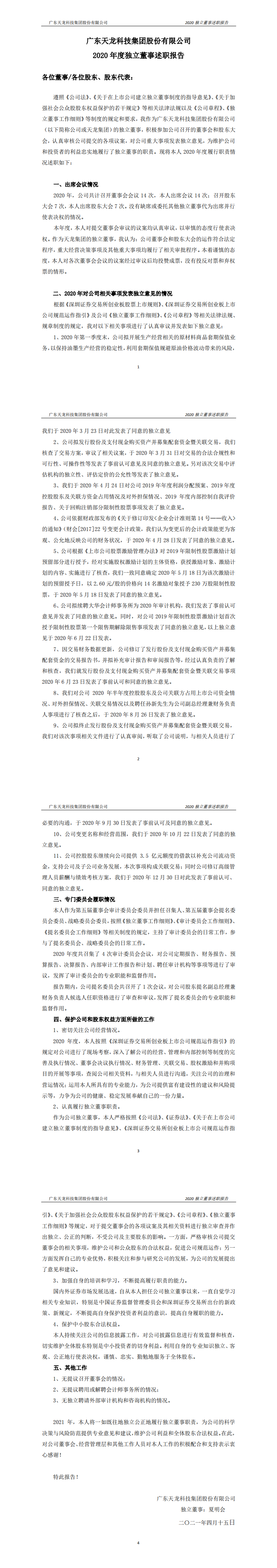 2020年度獨立董事述職報告(夏明會)