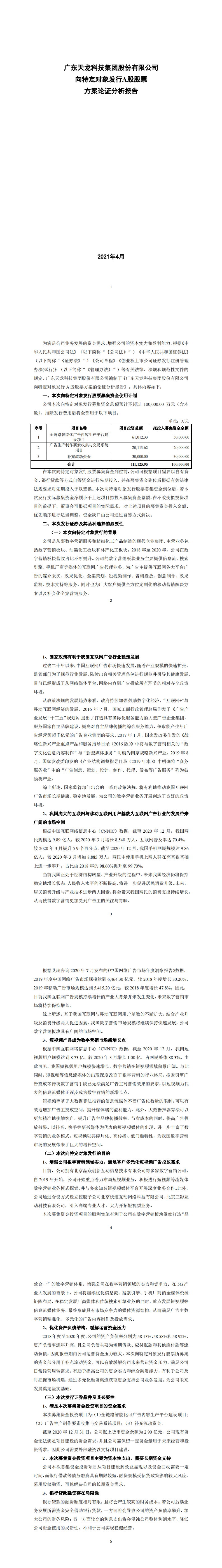 廣東天龍科技集團股份有限公司向特定對象發行A股股票方案論證分析報告