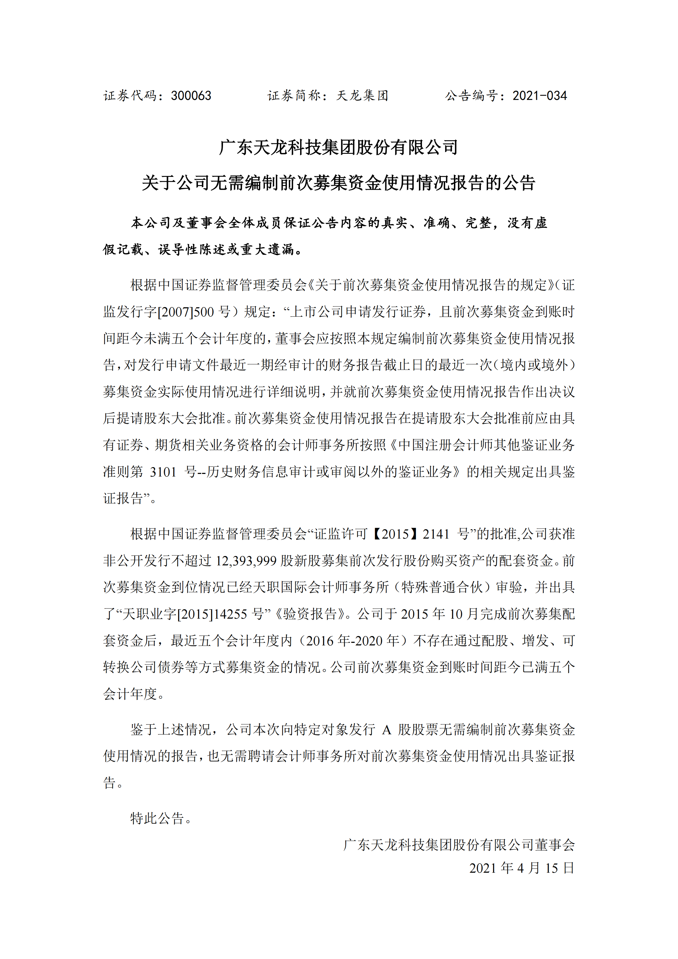 關于公司無需編制前次募集資金使用情況報告的公告