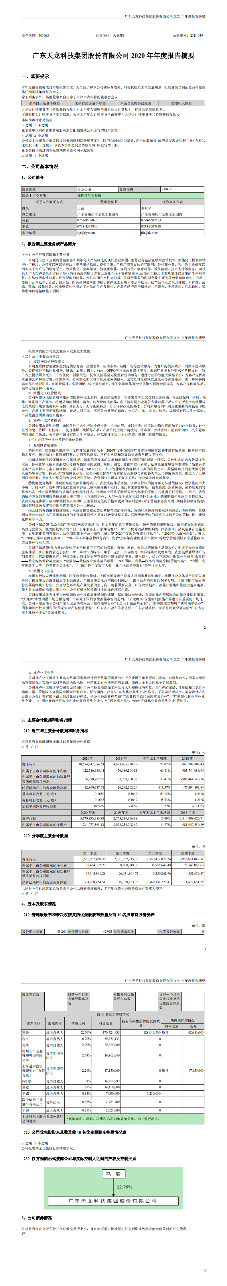 2020年年度報告摘要(更新后)