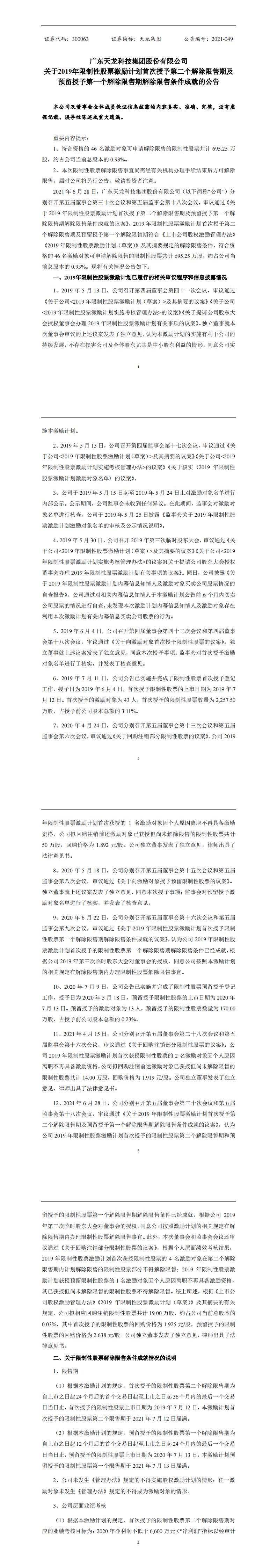 關于2019年限制性股票激勵計劃首次授予第二個解除限售期及預留授予第一個解除限售期解除限售條件成就的公告