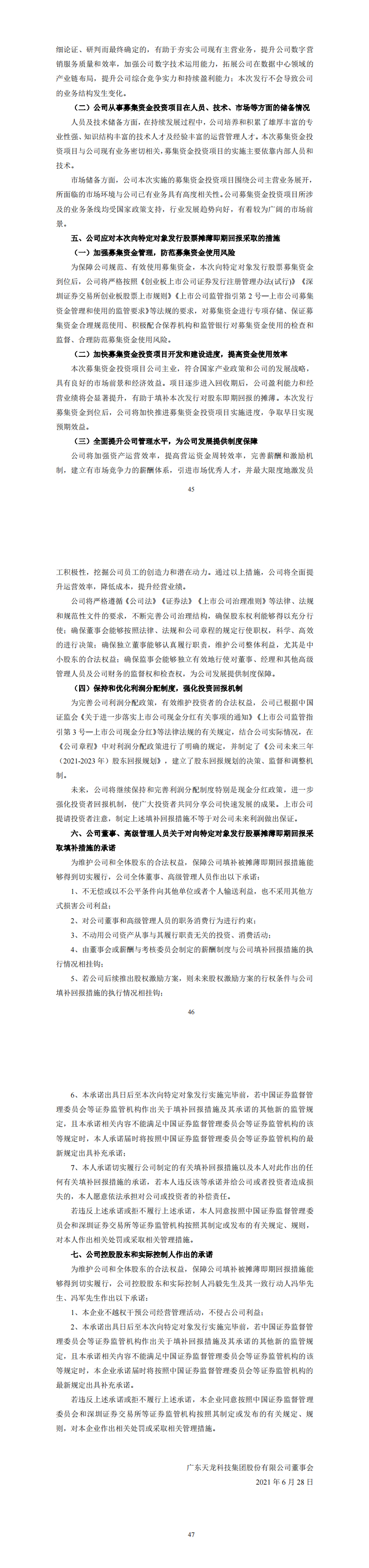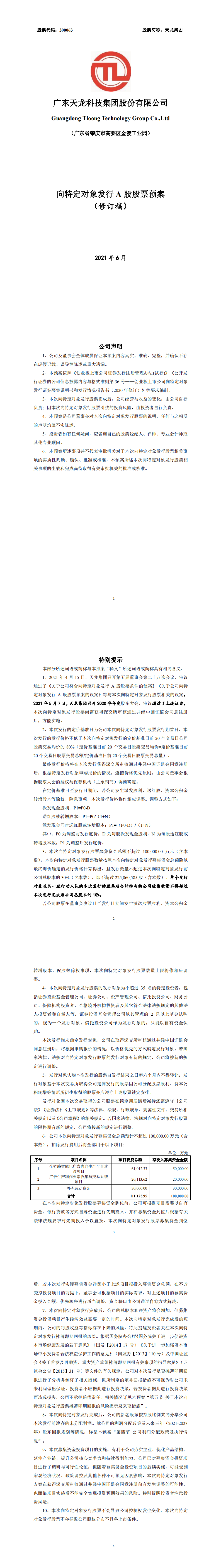 廣東天龍科技集團股份有限公司向特定對象發行A股股票預案