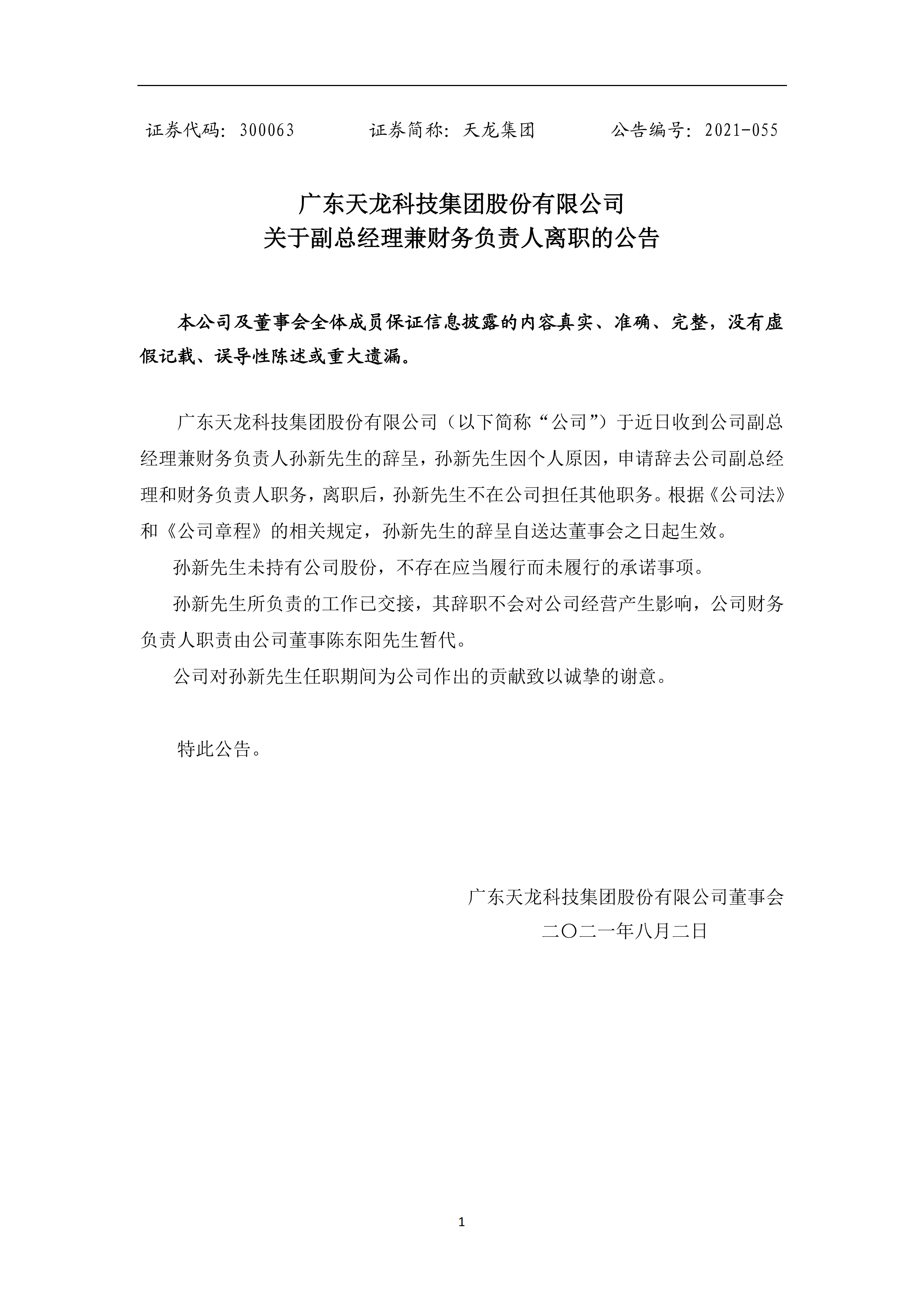 關(guān)于副總經(jīng)理兼財(cái)務(wù)負(fù)責(zé)人離職的公告