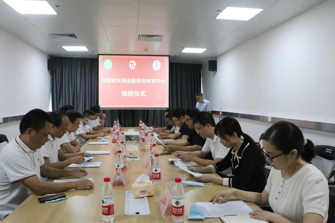 儀式開始前,三方代表致辭。公司總經理蔡威在致辭中對可降解環保油墨聯合研發中心成立表示熱烈祝賀,并希望各方集聚力量建設好聯合研發中心,推動環保油墨領域的發展。三方代表就合作共建事宜達成一致。