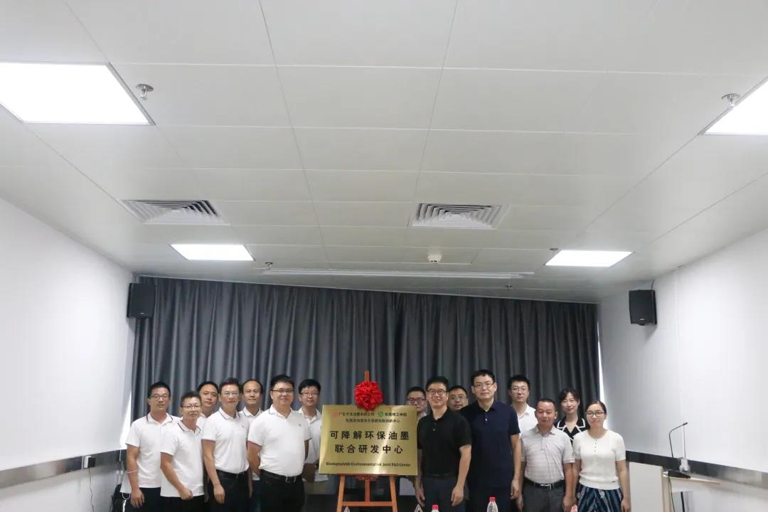 2021年8月20日,廣東天龍油墨有限公司-東莞理工學院-清華東莞創新中心可降解環保油墨聯合研發中心揭牌儀式在東莞理工學院科技創新研究院順利舉行。公司總經理蔡威,副總經理、可降解環保油墨聯合研發中心副主任王綱,以及產品中心和研發中心的產品經理及高級工程師出席揭牌儀式。東莞理工學院化學工程與能源技術學院院長徐勇軍,副院長尹輝斌,清華東莞創新中心副主任鄔新國,可降解環保油墨聯合研發中心主任程可可,副主任呂天一等出席揭牌儀式。