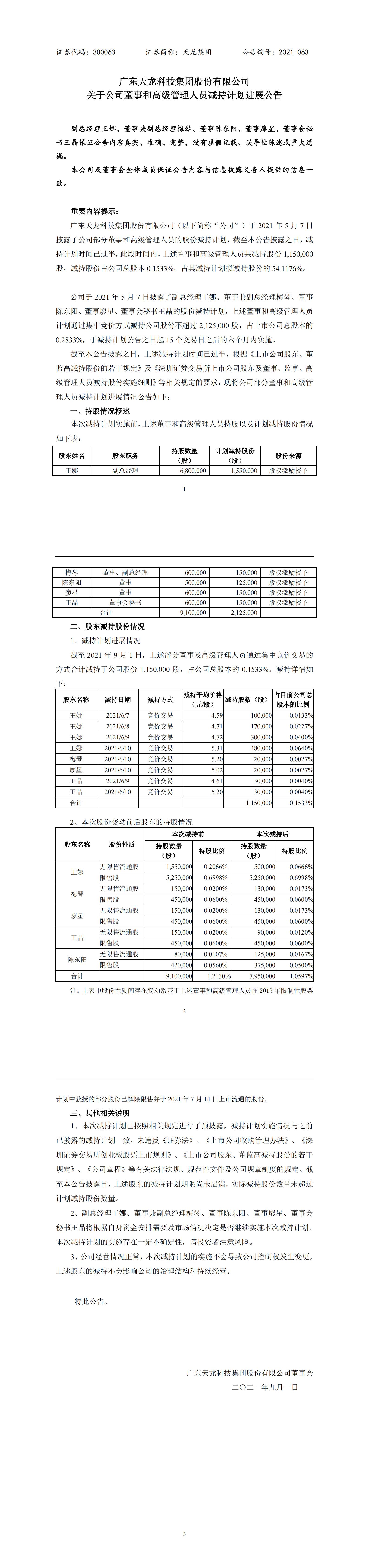 關于公司董事和高級管理人員減持計劃進展公告