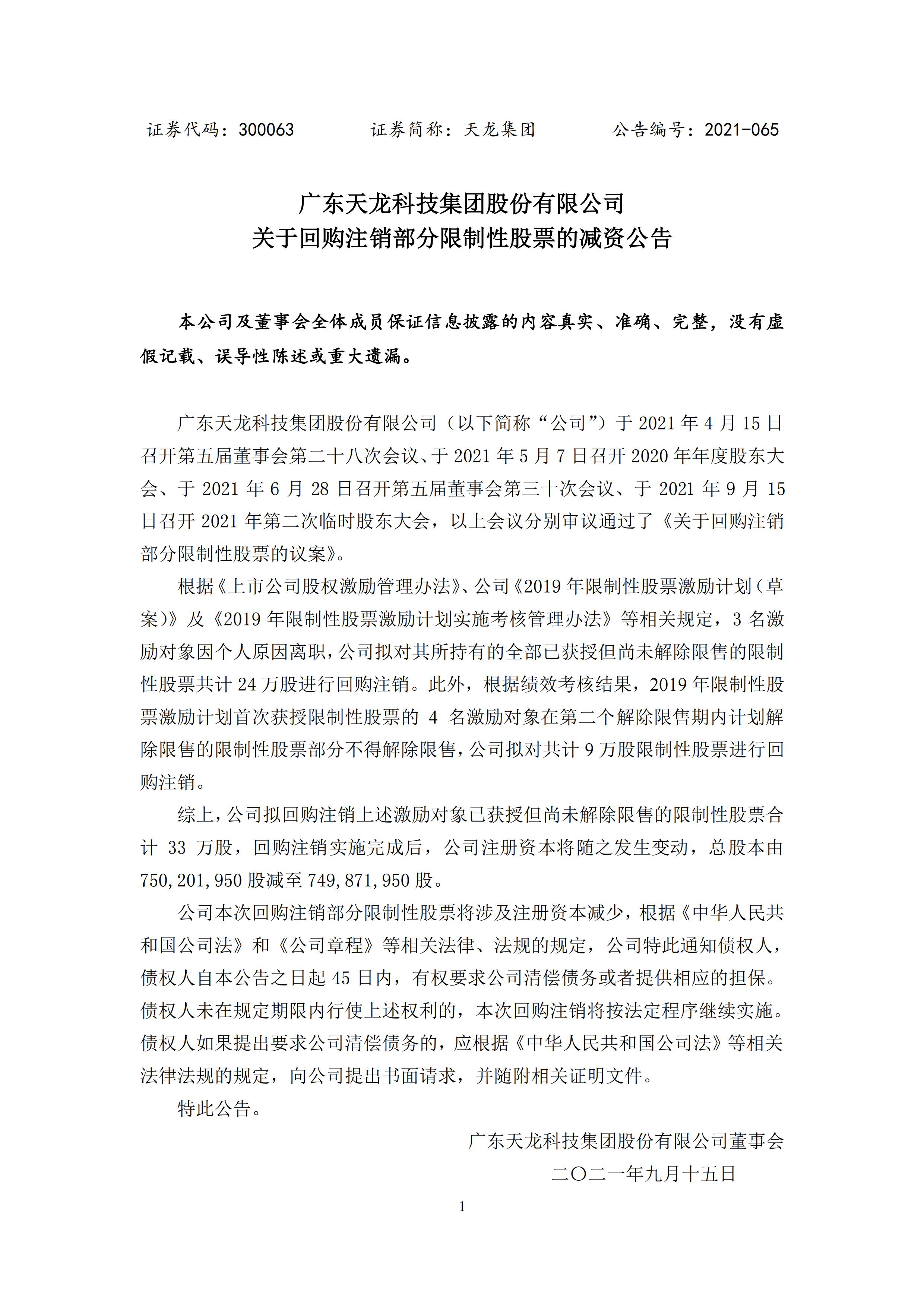 關于回購注銷部分限制性股票的減資公告