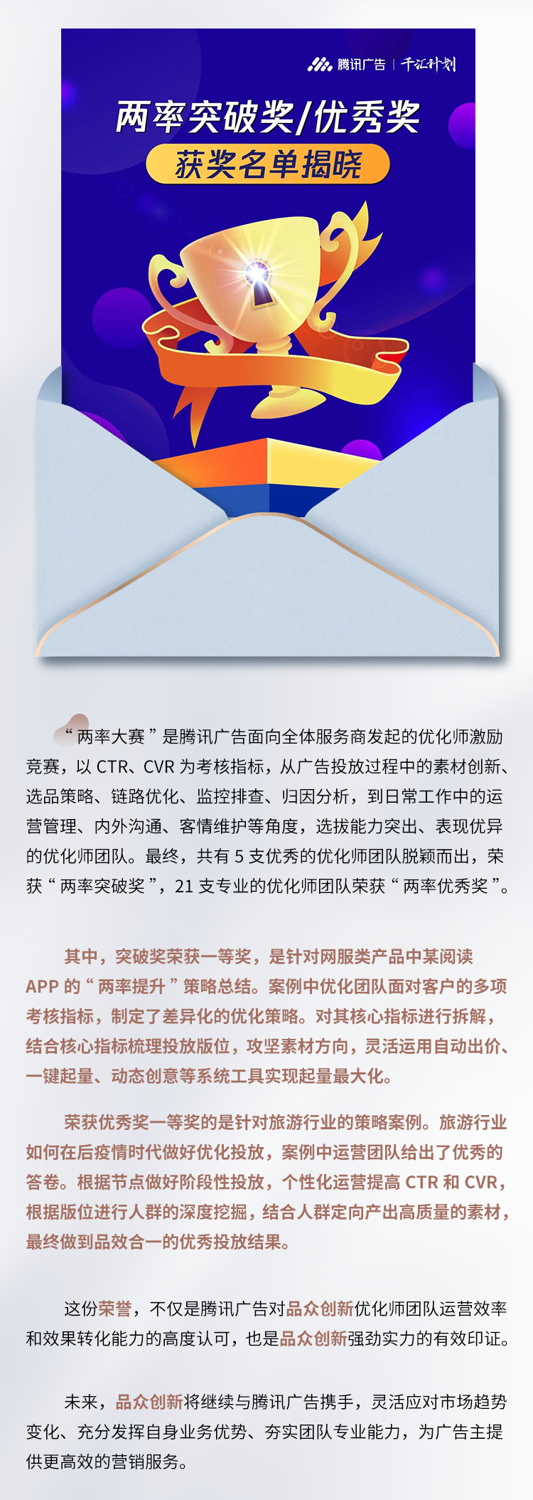 品眾創新榮獲騰訊廣告“兩率大賽突破獎一等獎及優秀獎一等獎