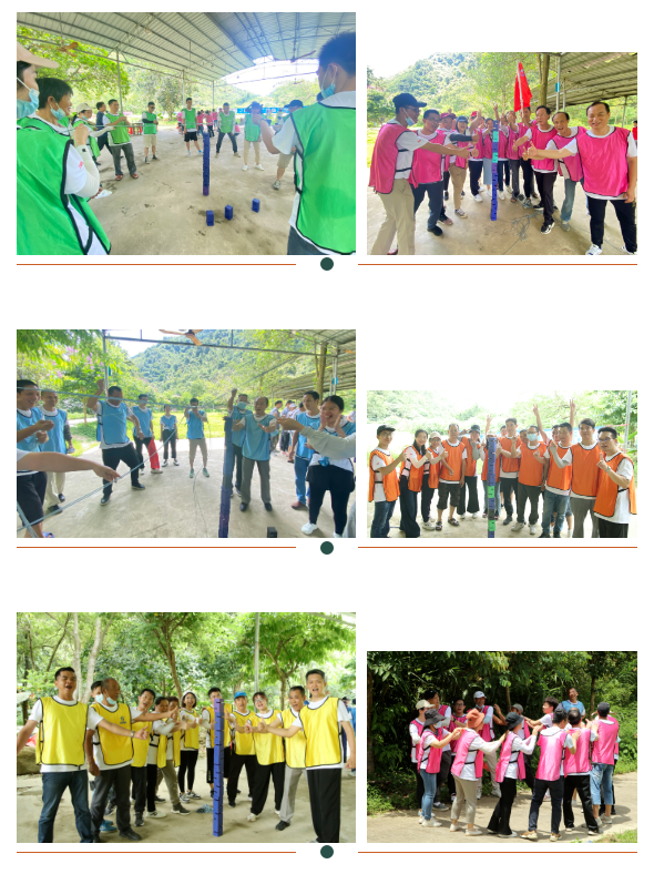 2022年6月25日早上9點30分,公司全體員工陸續到達黃金溝景區并迅速集合于培訓拓展基地。拓展基地設在風景優美的青山綠水間,巧妙地將各訓練項目隱藏于原生態的自然之中,別有一番滋味。教練采用破冰形式把全員分成10小隊,并內推產生隊長和副隊長。各團隊在隊長的帶領下,同心同德,團結一致,通力合作,在“激情99”、“合力建塔”團建活動中,斗智斗勇,齊心協力,激發團隊創新意識,充分展現團隊不服輸的精神。團建過程中,更有挑戰自然、享受自然的感覺,達到磨練意志、陶冶情操、熔煉團隊的培訓目的。
