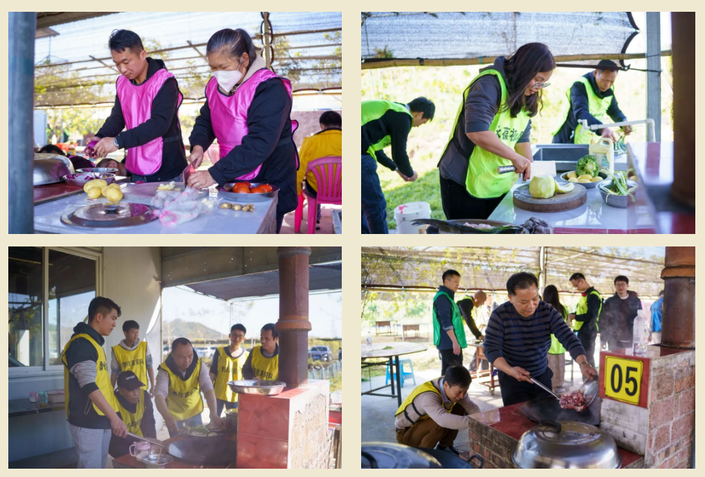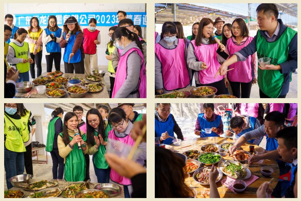 團拜會在一片歡聲笑語中落下帷幕。全員隨即前往活動現場。第一環節是分組開展廚藝風采比拼。比賽開始后,各小組擼起袖子爭分奪秒行動起來,使出渾身解數,把平時在家的“十八般武藝”和“完美的刀功”展現出來,大家仿佛置身于米其林廚房。時間一分一秒過去,現場飄蕩著各種各樣香味,一份份美味佳肴信手拈來,經過半個小時精心制作,各小組精心制作的美味作品亮相登場,色、香、味俱全的佳肴引來評委觀眾的嘖嘖稱贊。各組代表介紹本組菜品及寓意,評委細細品嘗并給予評分,第二隊“風生水起”、第七隊“龍鳳呈祥”、第九隊“比翼雙飛年年好”獲三等獎、第二隊“年年有魚”獲二等獎,第五隊的“牛氣沖天”獲一等獎,評委為獲獎小組頒發獎品,臺下歡呼聲一片。