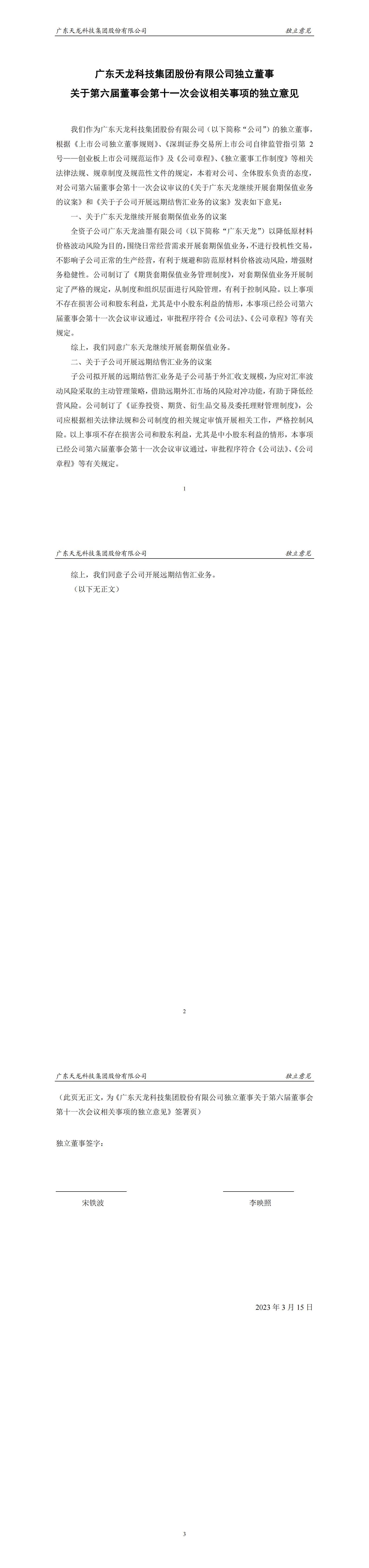 獨立董事關于第六屆董事會第十一次會議相關事項的獨立意見