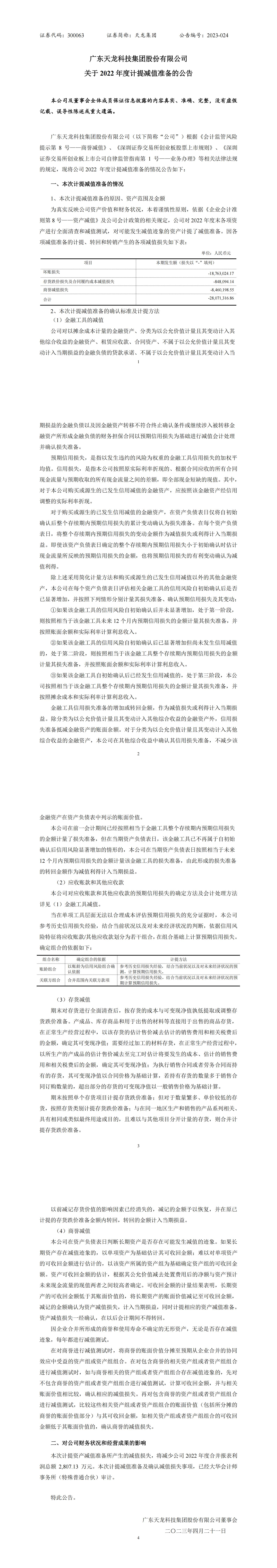 關(guān)于2022年度計(jì)提減值準(zhǔn)備的公告