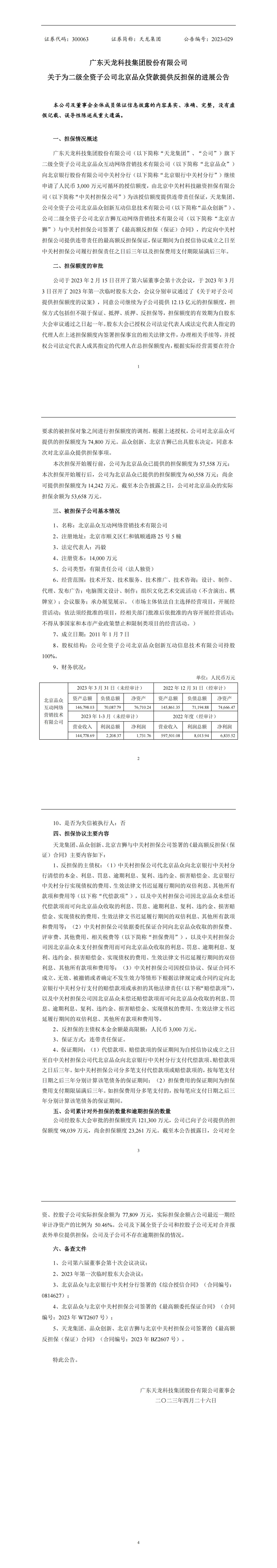 關于為二級全資子公司北京品眾貸款提供反擔保的進展公告