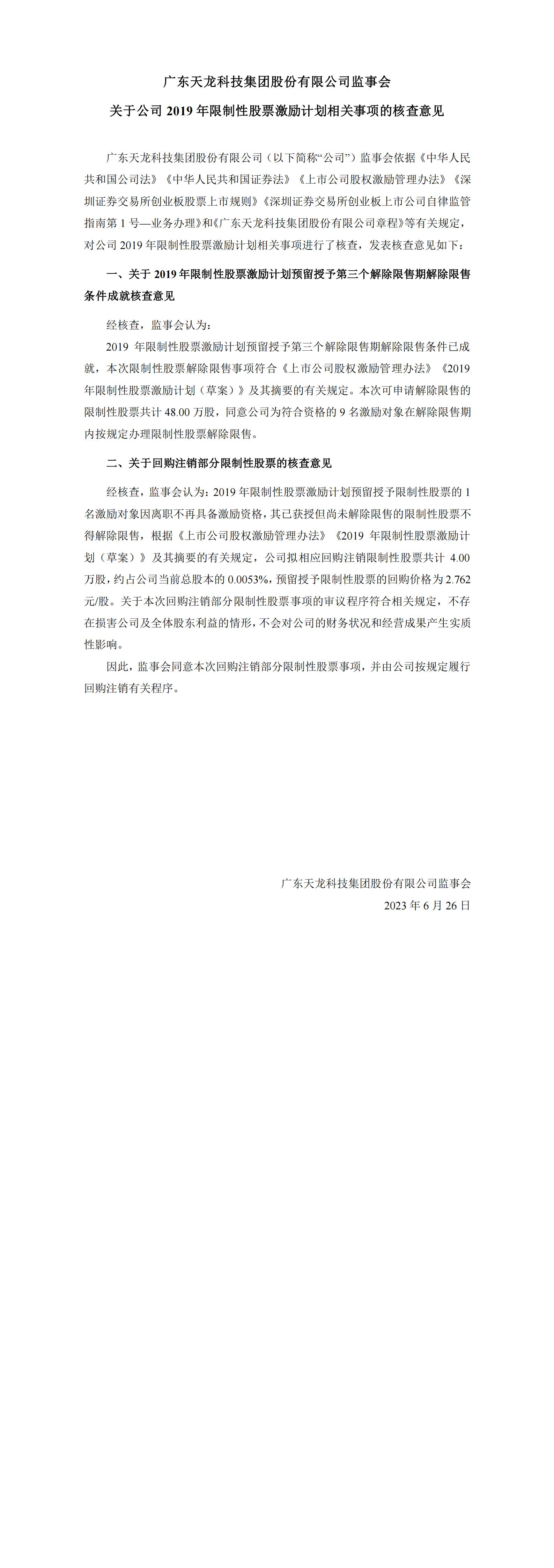 監(jiān)事會關于公司2019年限制性股票激勵計劃相關事項的核查意見