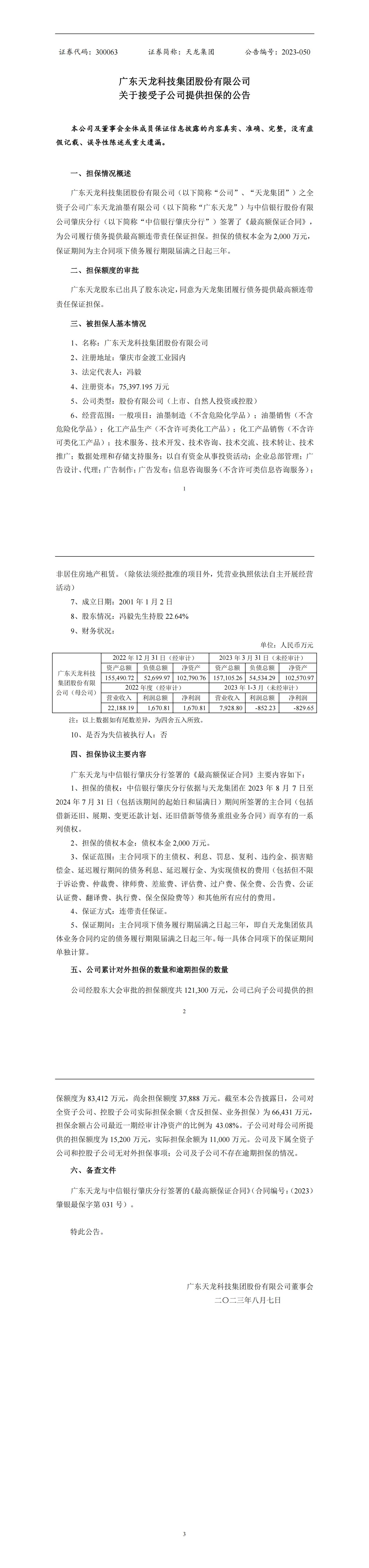 關(guān)于接受子公司提供擔(dān)保的公告