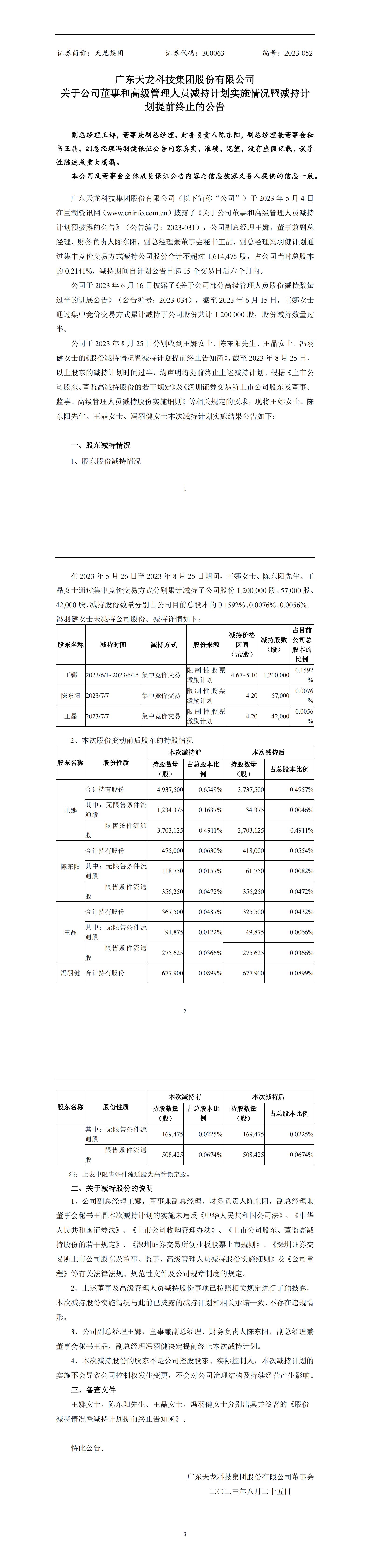 關于公司董事和高級管理人員減持計劃實施情況暨減持計劃提前終止的公告