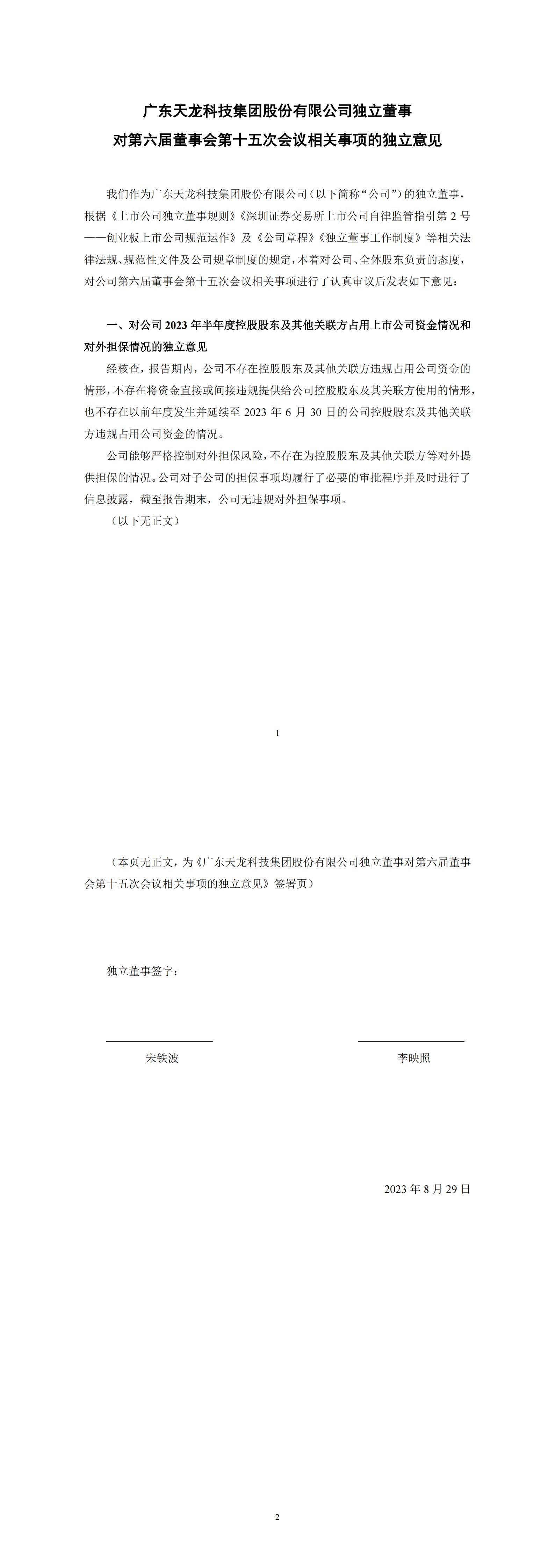 獨立董事對第六屆董事會第十五次會議相關事項的獨立意見