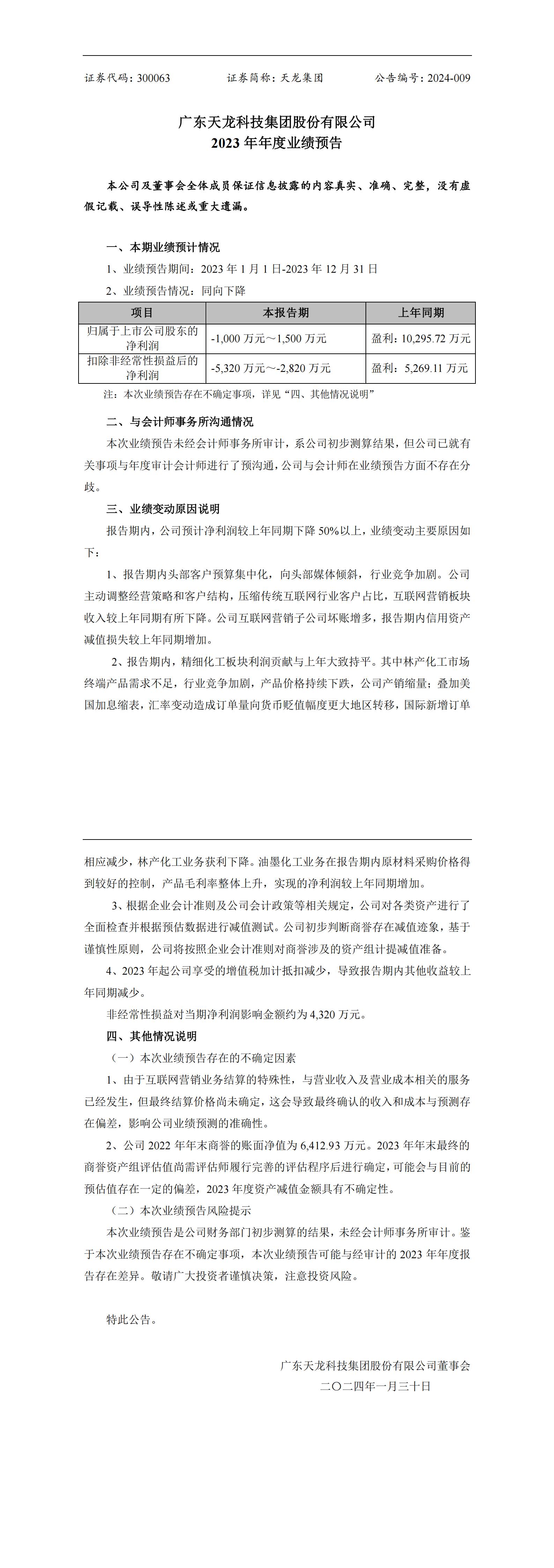 2023年年度業績預告