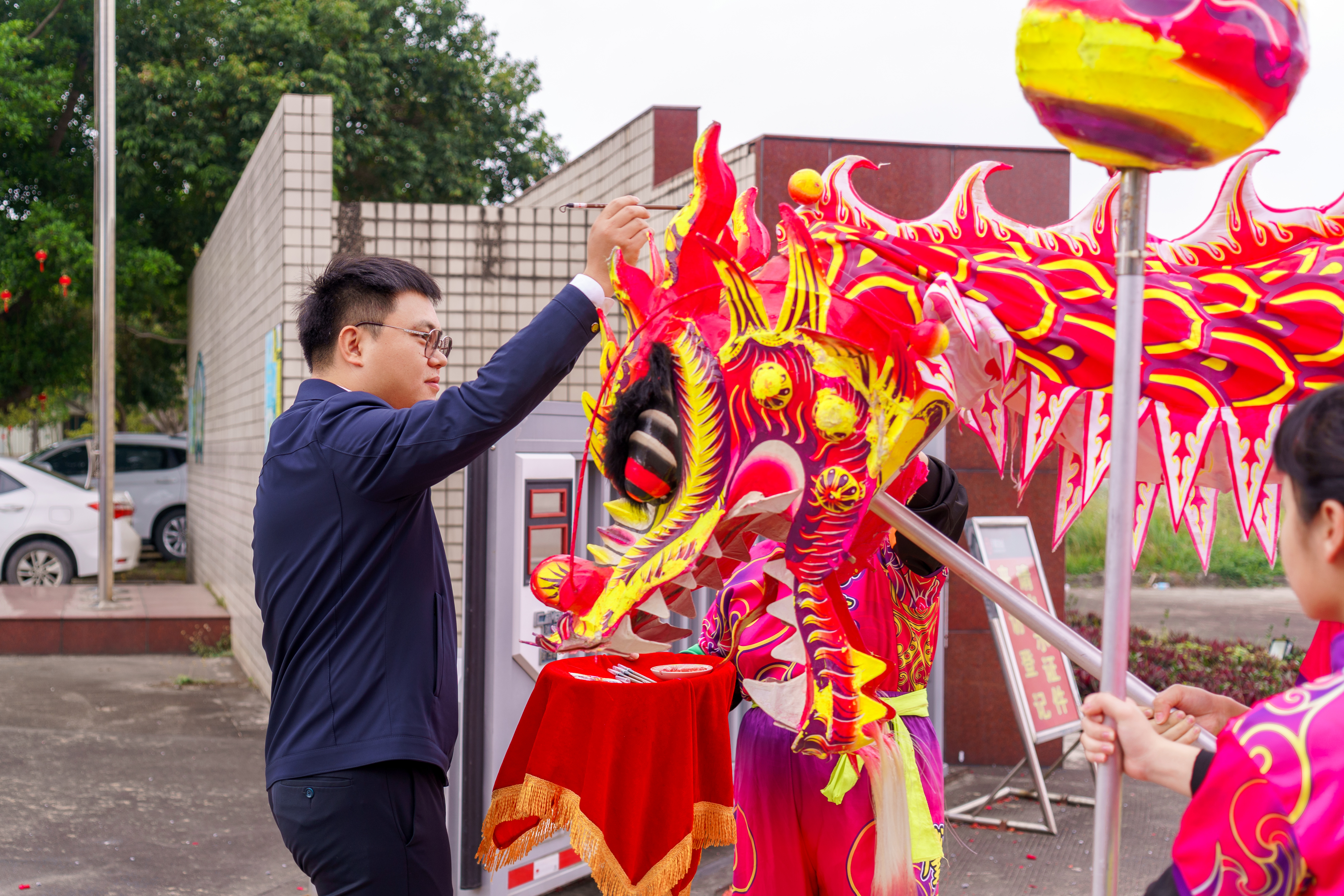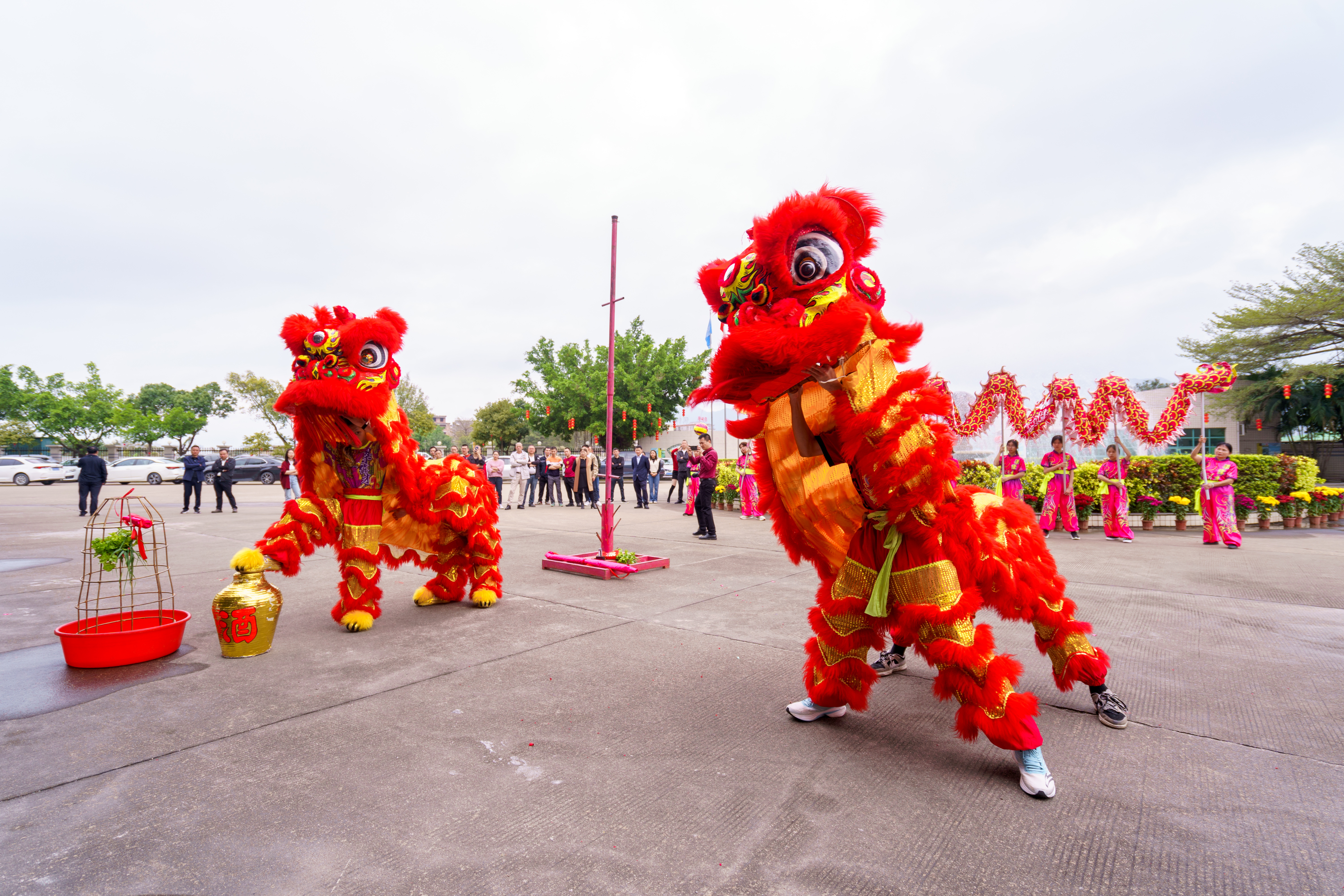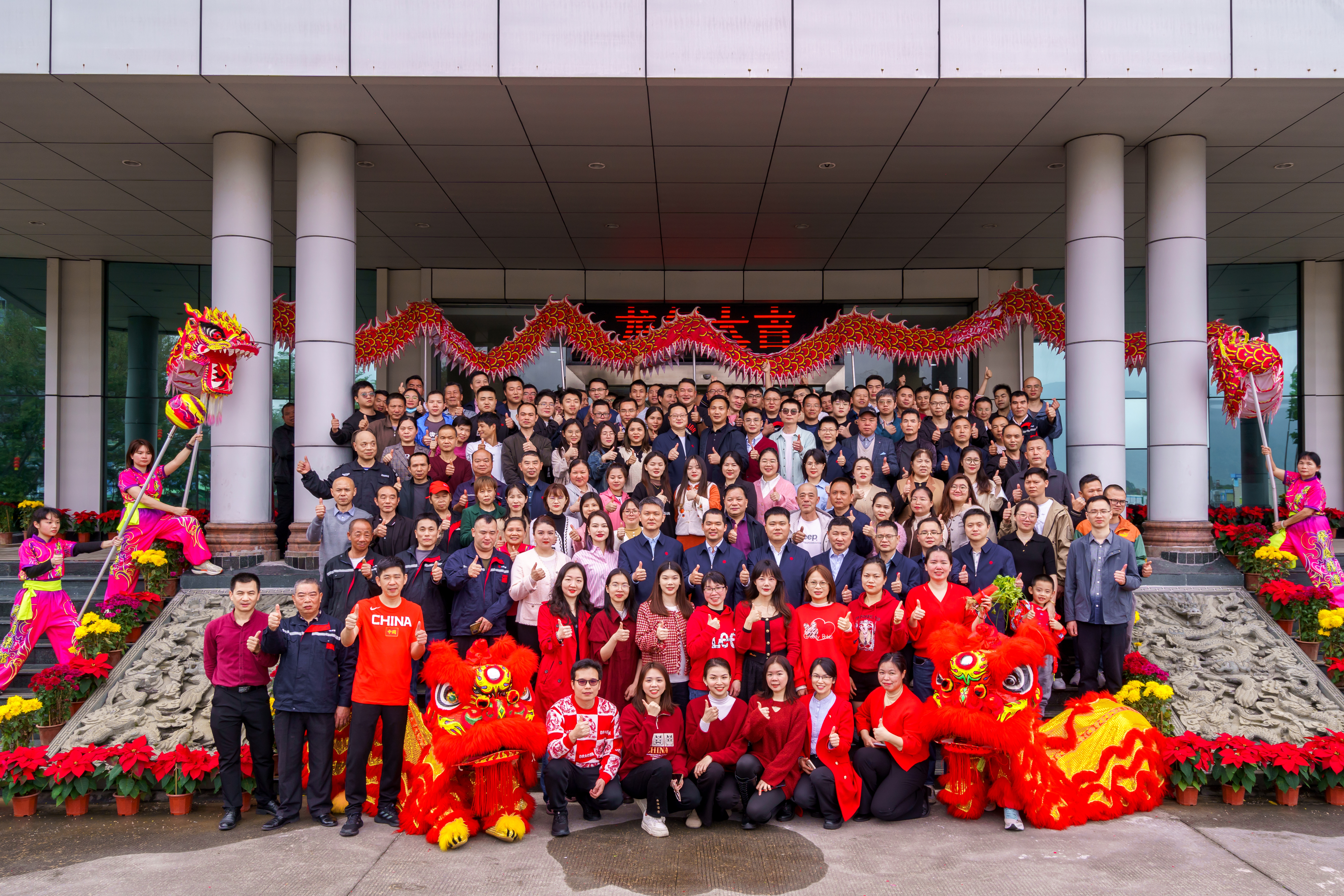 09:28,活動開始,爆竹聲聲賀開年,總經理蔡威先生進行點睛儀式,為新春團拜會拉開了序幕。隨后鑼鼓聲起,龍獅歡騰齊賀歲,為大家帶來了節日的喜慶氛圍。精彩紛呈的節目如“豬籠入水”和“一柱擎天”等輪番上演,現場員工反應高潮迭起。