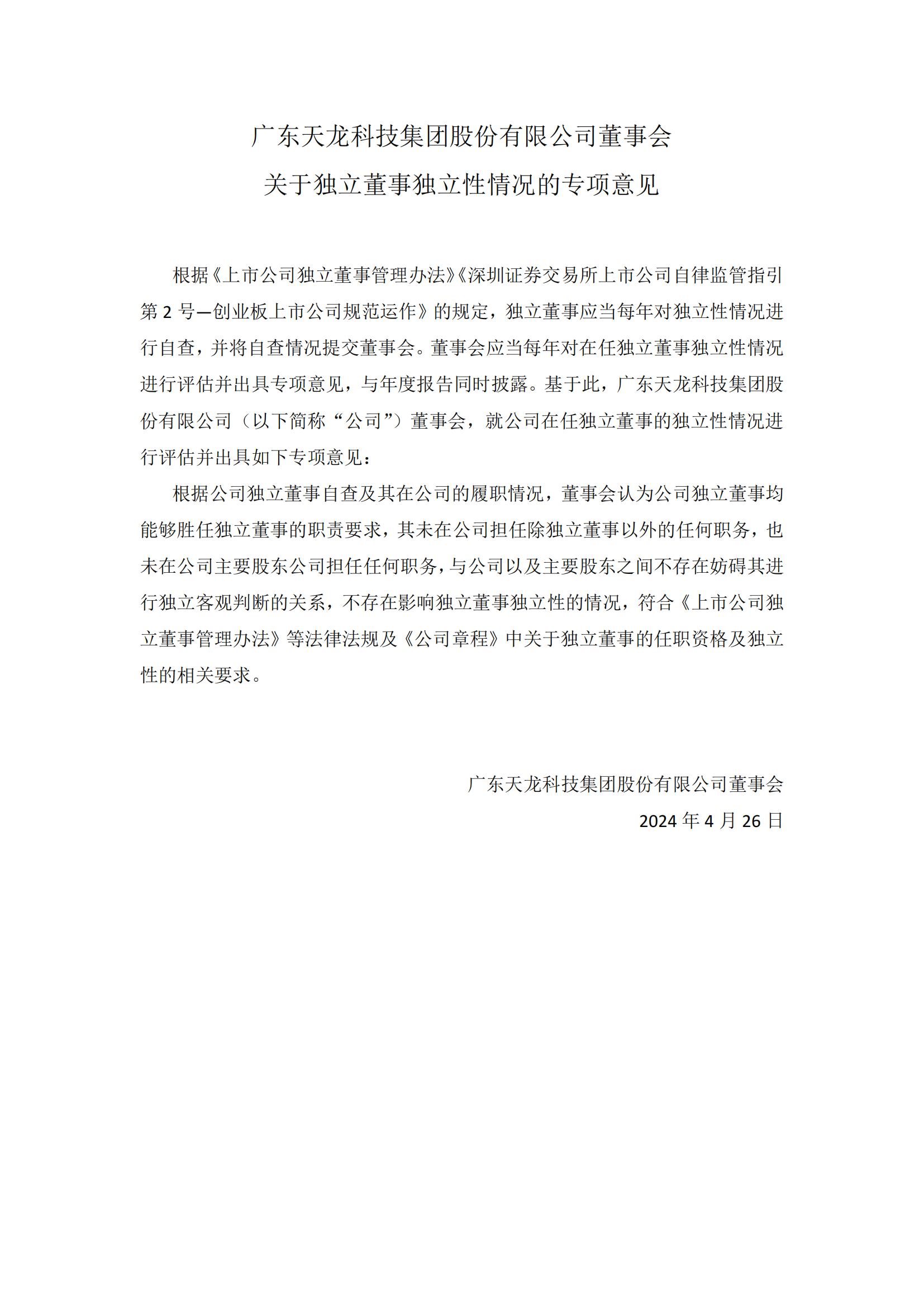 董事會對獨董獨立性評估的專項意見