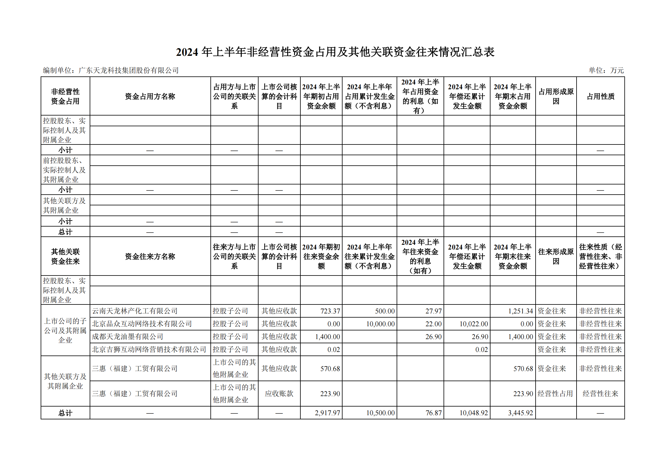 2024年上半年非經營性資金占用及其他關聯資金往來情況匯總表