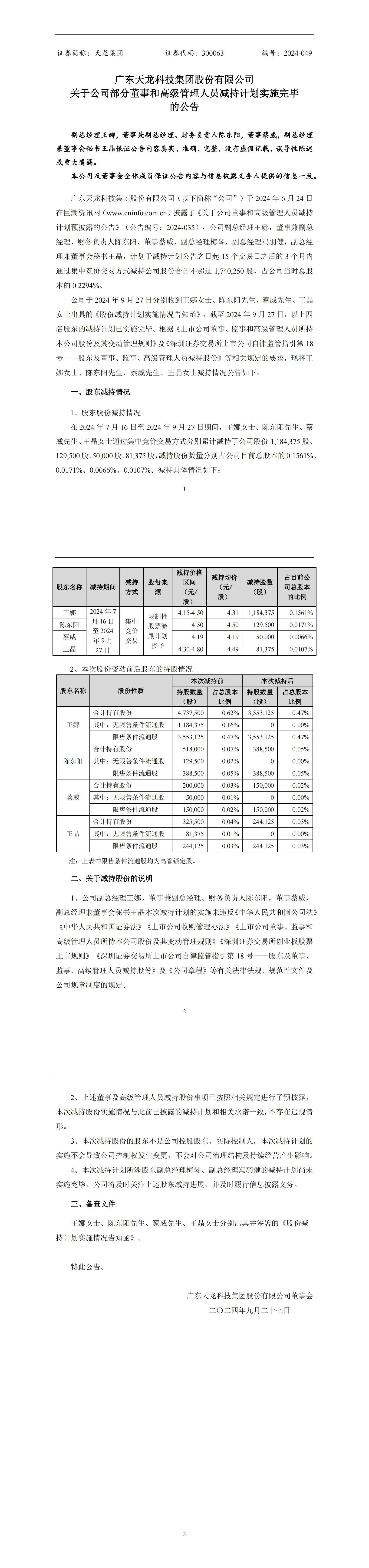 關(guān)于公司部分董事和高級(jí)管理人員減持計(jì)劃實(shí)施完畢的公告