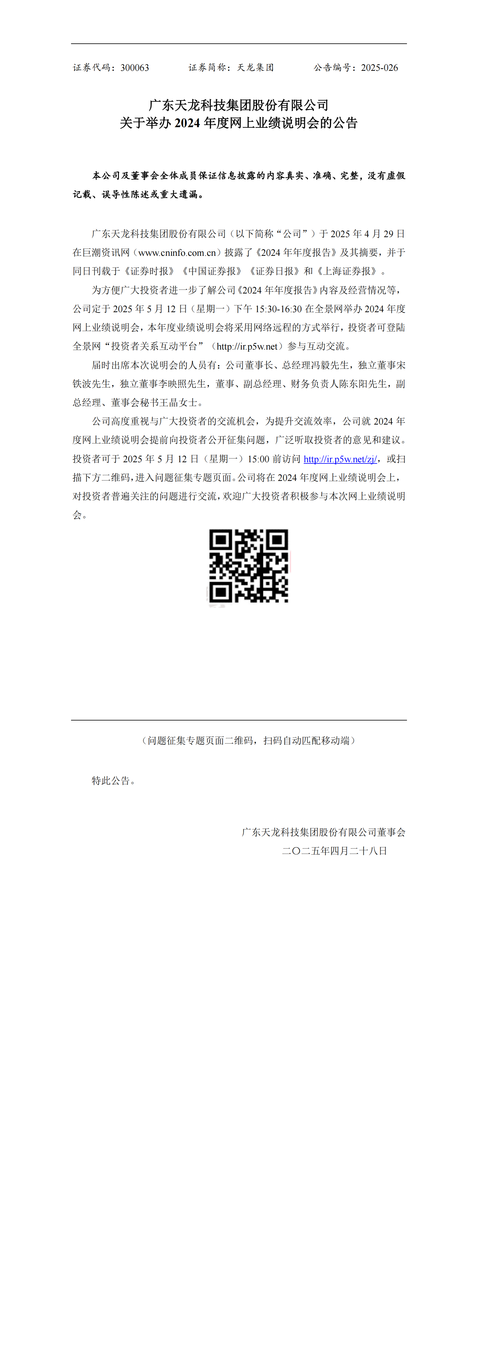 關于舉辦2024年度網上業績說明會的公告